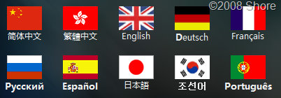 我的网站上的language页面是放入了一个5×5的表格,再将10个国旗放入其中。各个语言的名称这里并没有采用英语,而是其各自对其语言本身的名称。我觉得这样是对读者的尊重吧。