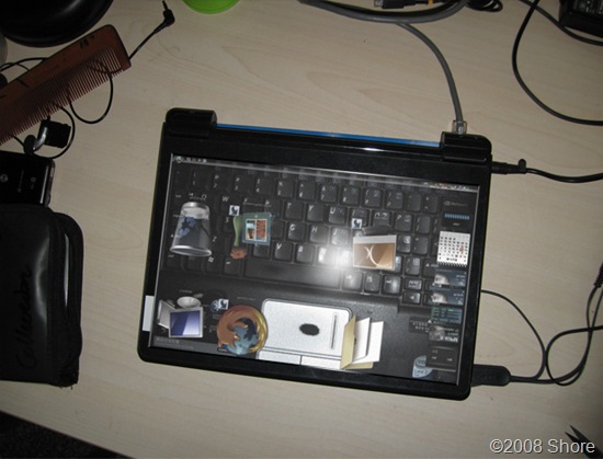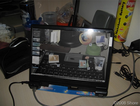 可能有人在网上见过有些图片,液晶显示器变成透明的了,能够看见显示器后面的东西。当然其中绝大部分是PS的伪新闻,但是这么牛X的创意是否能够真的实现呢?我决定用自己的笔记本电脑来试验一下。结果是大成功啊!效果非常好,看屏幕上的内容就好比透过鱼缸看鱼缸后面的物体一样。显示内容、显示器后面的景色都很好哦!